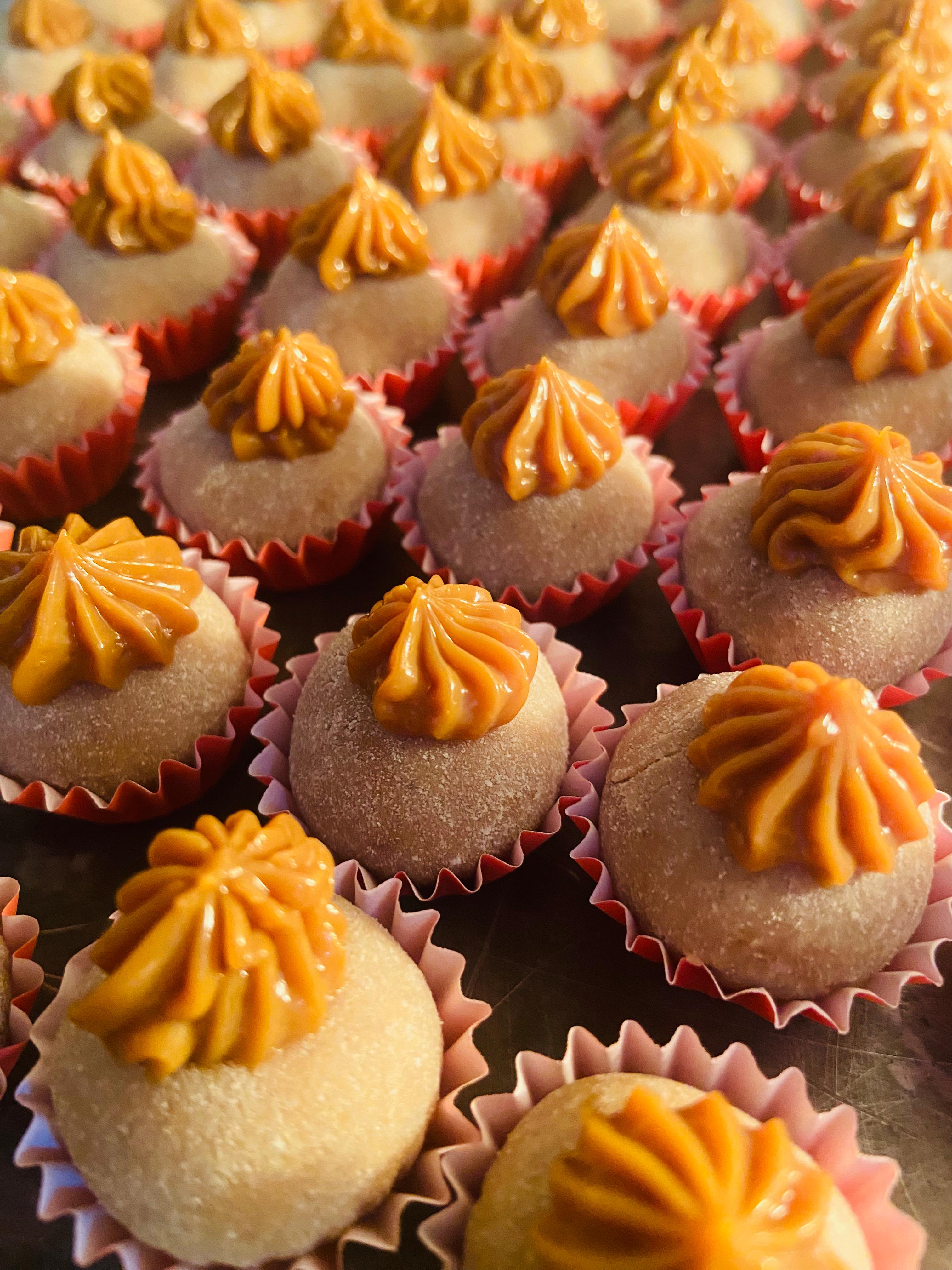 MANJAR – Manjar cremoso de coco com pedacinhos de coco, decorado com calda e pedaços de ameixa.